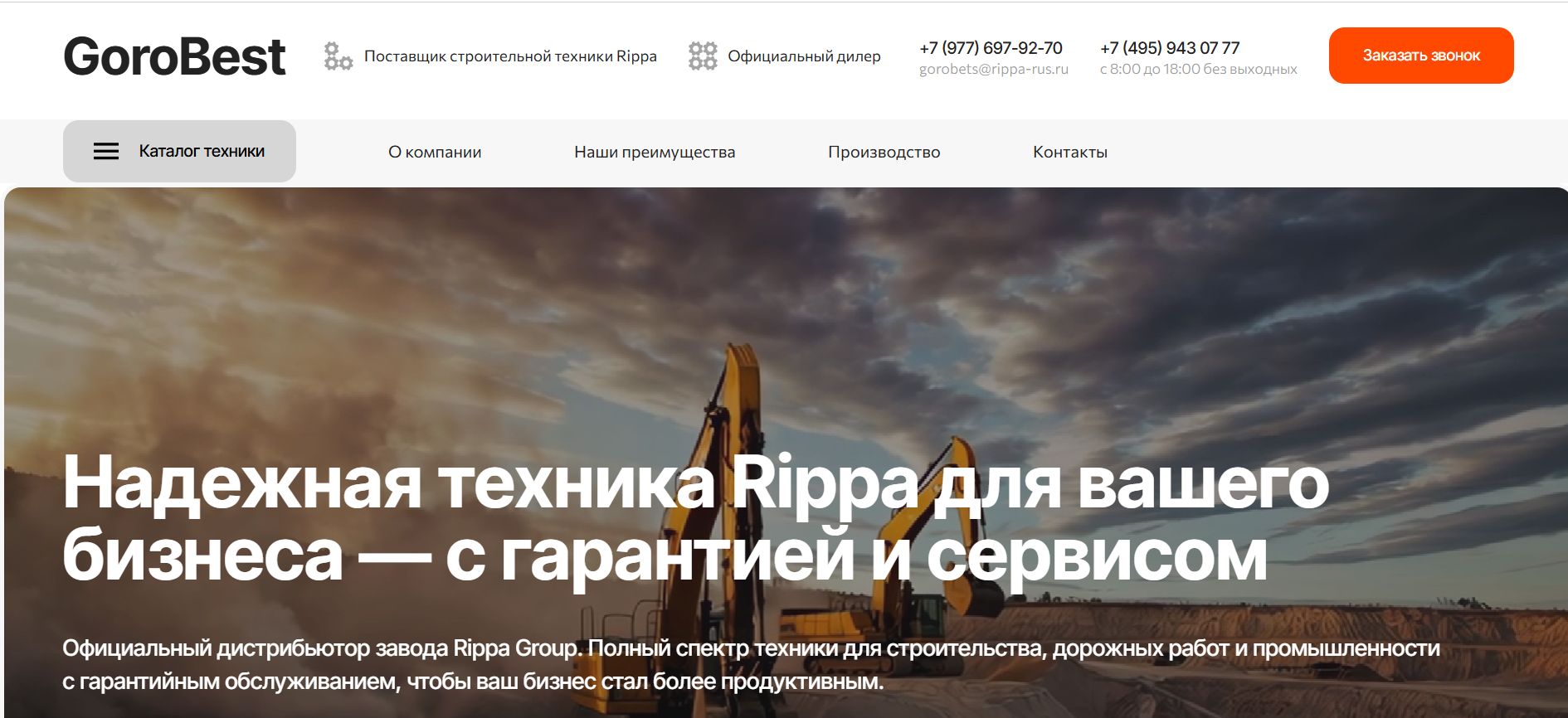 Официальный дистрибьютор завода Rippa Group. Полный спектр техники для строительства, дорожных работ и промышленности с гарантийным обслуживанием, чтобы ваш бизнес стал более продуктивным.