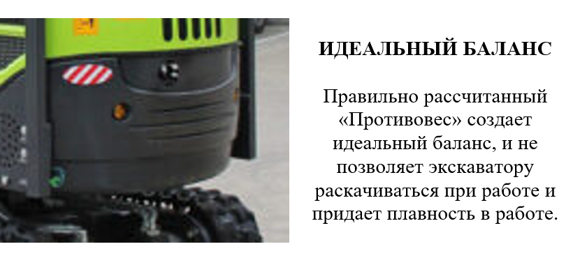 Противовес — Правильно рассчитанный «Противовес» создает идеальный баланс, и не позволяет экскаватору раскачиваться при работе и придает плавность в работе.